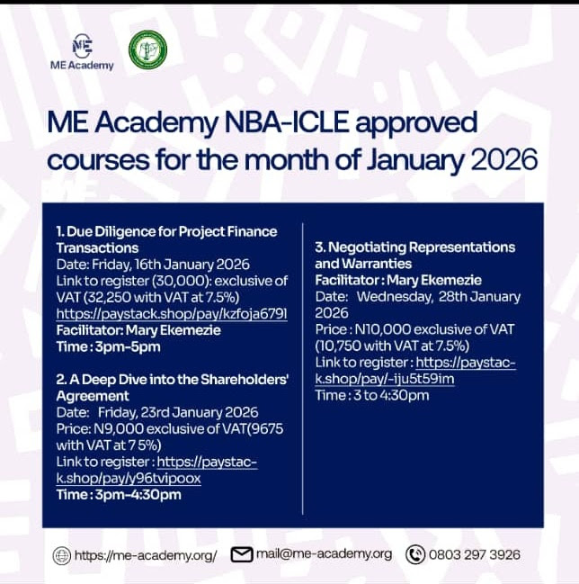 Negotiating Representations and Warranties 2026 - Legal Event by ME Academy in Other | January 2026 Legal Events Nigeria